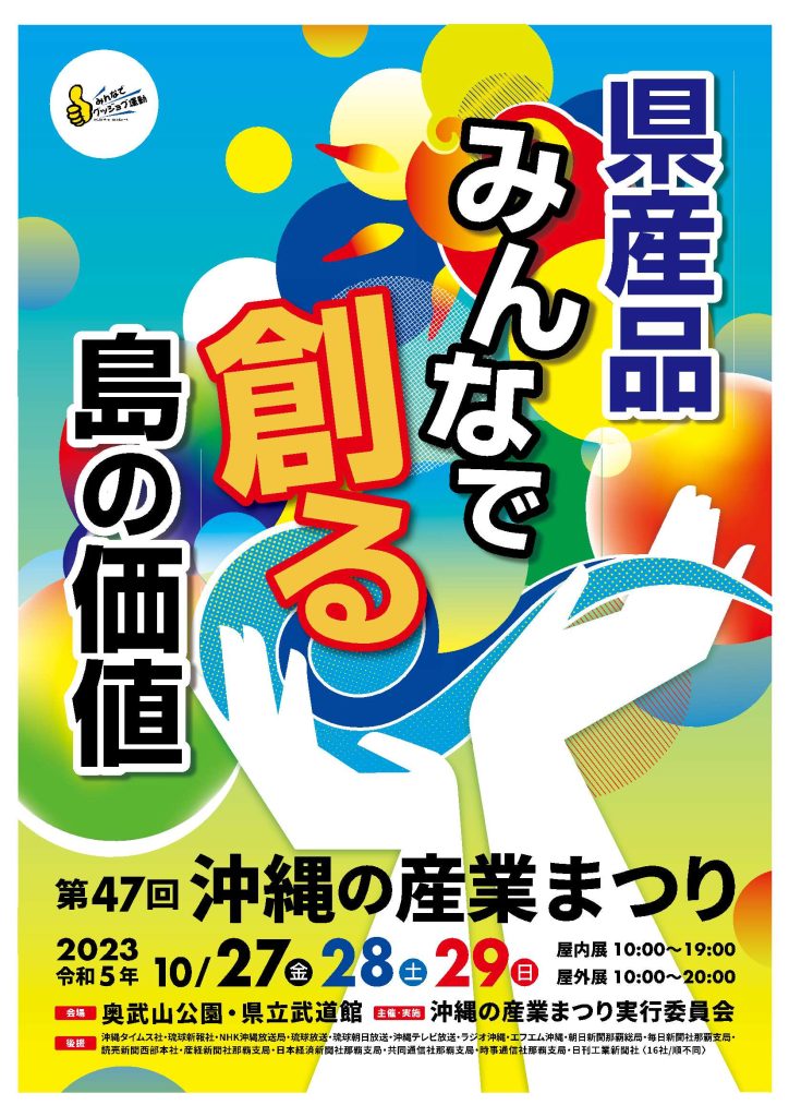 令和5年10月27日(金)~29日(日)の3日間、「第47回 沖縄の産業まつり」が奥武山公園で開催されます。