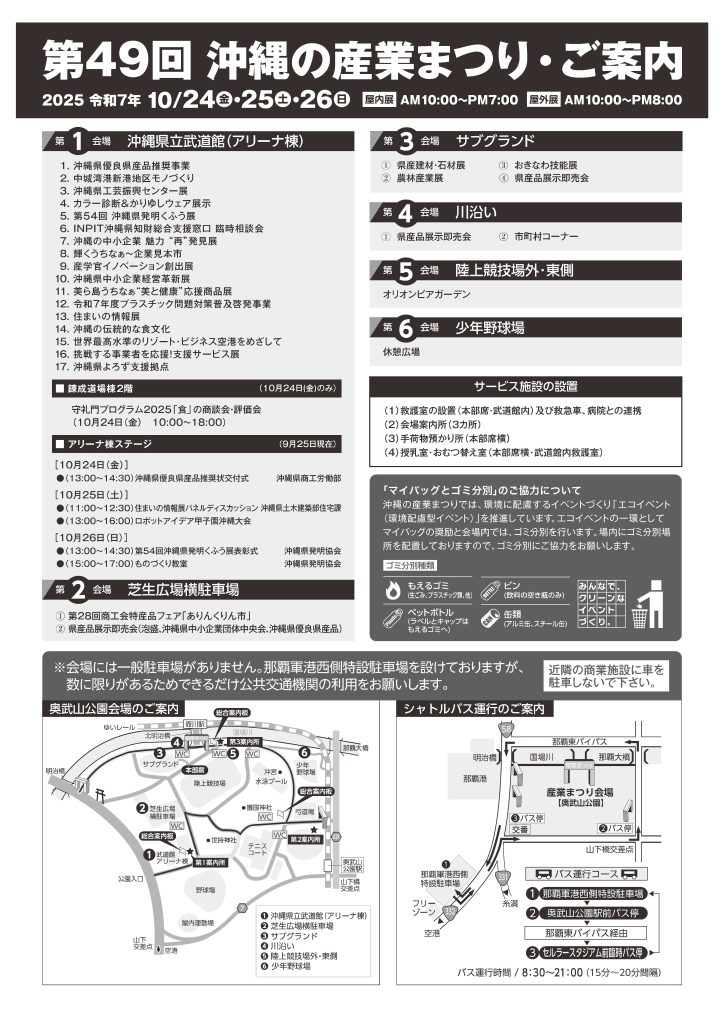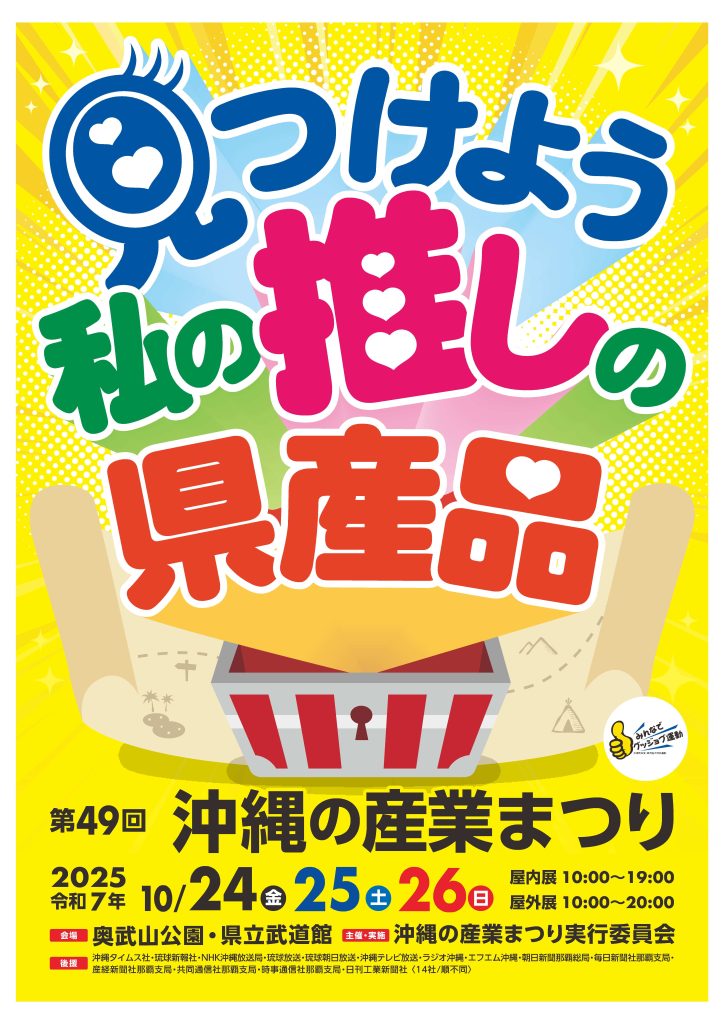 令和7年10月24日(金)~26日(日)の3日間、「第49回 沖縄の産業まつり」が奥武山公園で開催されます。